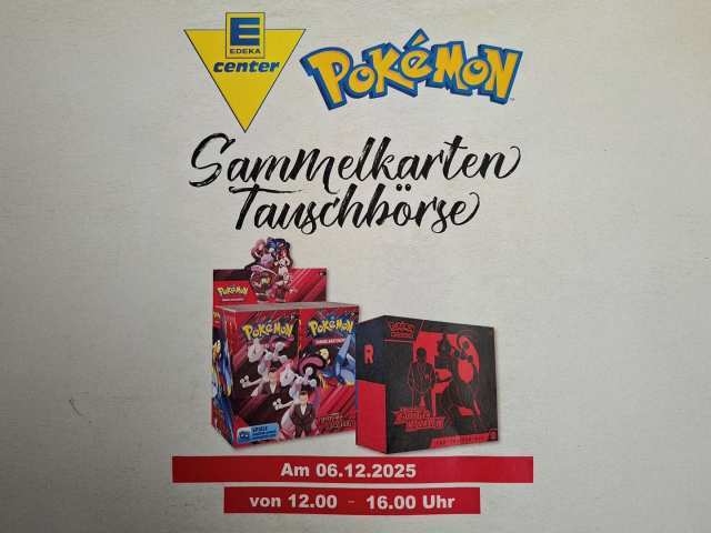 Pokémon-Fans aufgepasst: Am Samstag, den 6. Dezember, ab 12 Uhr findet im Handelscentrum Strausberg die große Pokémon-Tauschbörse statt! Die Tauschbörse befindet sich vorne in der ehemaligen Zoo und Co.-Fläche, direkt vor dem EDEKA-Eingang.